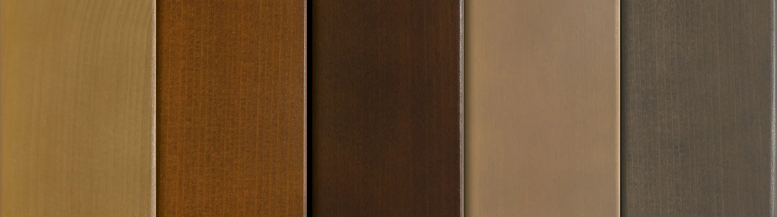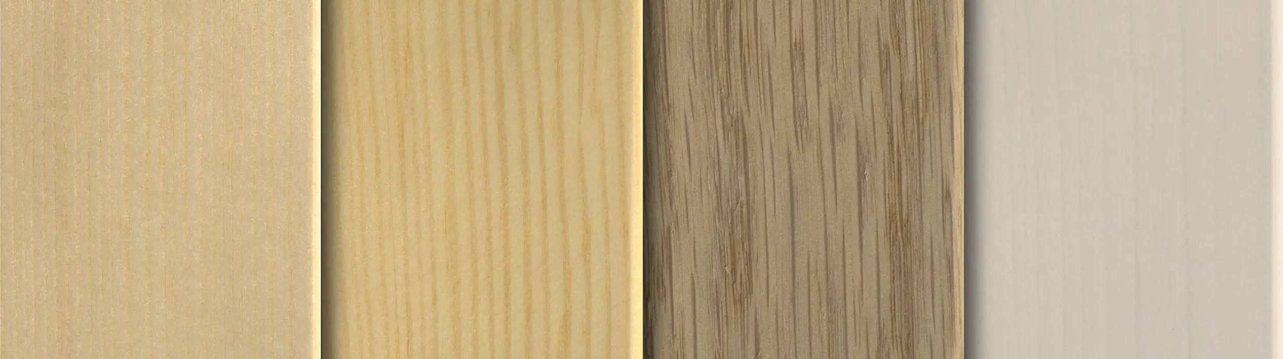 Auf der Aussenseite ist eine maximale Wetterfestigkeit und Dauerhaltbarkeit das logische Ziel. Deshalb kommen hier dauerhafte Holzarten, wie zum Beispiel Eiche und Lärche zum Einsatz.