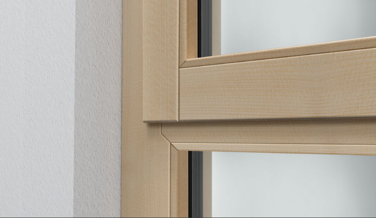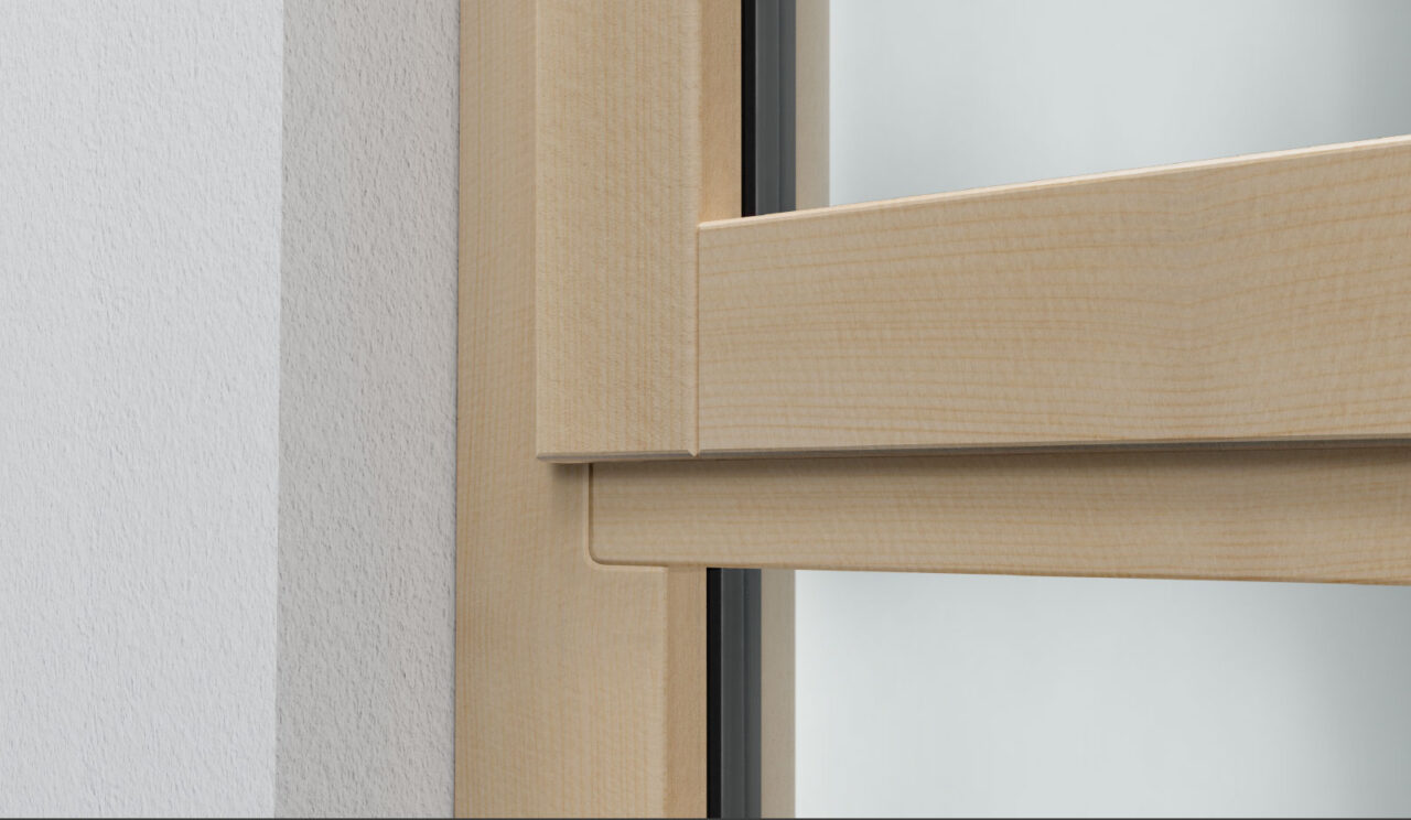 Die neuartige TWINDOW®-Technologie mit ihrer konstruktiven Trennung von Außen- und Innenfenster ermöglicht auch Oberflächen, die vorher bei Fenstern eher unüblich waren.